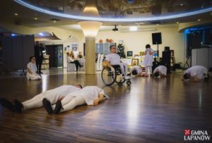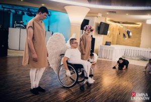 Po przemówieniach mikrofon przejęła nasza rehabilitantka Wanda Drożdż, która poprowadziła dalszą część imprezy zapraszając wszystkich gości na ciepłą kolację i deser, a następnie do obejrzenia występów naszych podopiecznych. Uczestnicy wystąpili w dwóch odsłonach przedstawiając w pierwszej części spektakl pt.: „ZNIEWOLENI”, a w części drugiej zaprezentowali naszą najnowszą sztukę pt.: „WYBÓR NALEŻY DO CIEBIE”. Obie sztuki wywarły duże wrażenie na naszych gościach. Występujący zostali nagrodzeni gromkimi brawami oraz licznie składanymi gratulacjami.