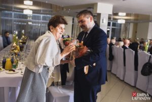 W dalszej kolejności wypowiedzieli się były starosta Ludwik Węgrzyn, były wójt Jan Kulig oraz Dyrektor PCPR-u Elżbieta Paczyńska. Wśród przemawiających nie zabrakło również przedstawicieli rodziców naszych uczestników. Pani Władysława Kaczmarczyk – Wiceprezes KSPN „Otwarte Serca” i pani Krystyna Łabuda – Skarbnik KSPN „Otwarte Serca”, całym sercem okazały wdzięczność wszystkim władzom, dzięki którym powstał w Łapanowie Warsztat Terapii Zajęciowej, przez co wiele osób niepełnosprawnych z naszego terenu i okolicznych gmin znalazło swój drugi dom, miejsce, do którego chętnie przychodzą i dobrze w nim się czują. Panie podziękowały również kadrze WTZ za ich pracę, zaangażowanie i opiekę nad ich dziećmi. Wyrazem wdzięczności był upominek oraz kwiaty, jakie matki uczestników wręczyły władzom i pracownikom Warsztatu.