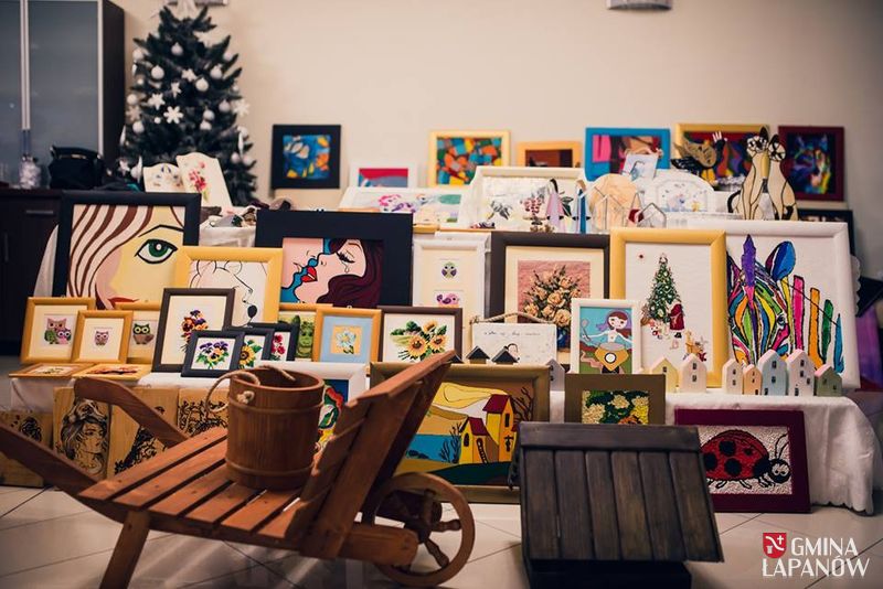 Podczas uroczystości, na życzenie naszych licznie przybyłych gości odbyła się licytacja prac wykonanych podczas zajęć w Warsztacie. Licytację jak zwykle poprowadziła Wanda Drożdż. Najdroższym obrazem, jaki został wylicytowany był „Jezus”, wykonany techniką mozaiki ze szkła witrażowego przez podopiecznego pracowni szkła i witrażu – Waldemara Korbę. Obraz został kupiony za kwotę 1000 złotych. Oprócz licytacji, nasi szanowni goście mogli również nabyć prace wystawione na kiermaszu. Prace te cieszyły się równie dużym zainteresowaniem, co te wystawione do licytacji.