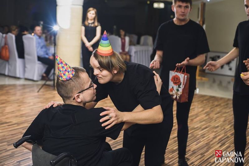 Po przemówieniach mikrofon przejęła nasza rehabilitantka Wanda Drożdż, która poprowadziła dalszą część imprezy zapraszając wszystkich gości na ciepłą kolację i deser, a następnie do obejrzenia występów naszych podopiecznych. Uczestnicy wystąpili w dwóch odsłonach przedstawiając w pierwszej części spektakl pt.: „ZNIEWOLENI”, a w części drugiej zaprezentowali naszą najnowszą sztukę pt.: „WYBÓR NALEŻY DO CIEBIE”. Obie sztuki wywarły duże wrażenie na naszych gościach. Występujący zostali nagrodzeni gromkimi brawami oraz licznie składanymi gratulacjami.