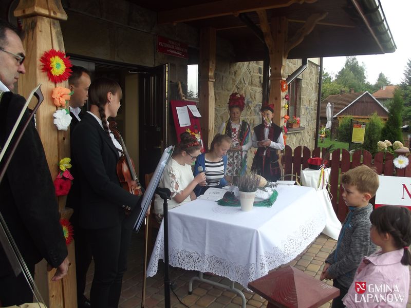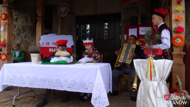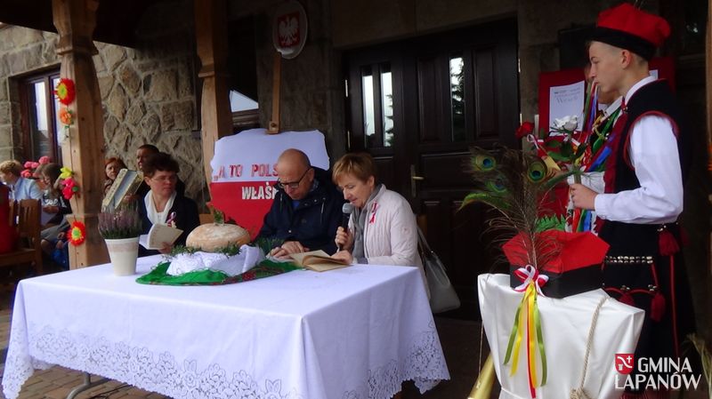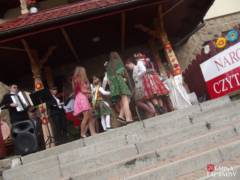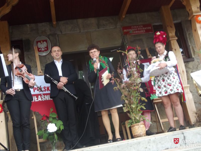 Z kolei dramat do ręki wzięli gospodarz miejsca ks. prob. Stanisław Jachym oraz Dyrektor Publicznej Szkoły Podstawowej im. Jana Kasprowicza, wcielając się w role Czepca i Dziennikarza – panowie rozpoczęli kolejną edycję prezydenckiej akcji społecznej. Zaproszeni goście, nauczyciele, rodzice, dzieci i młodzież gimnazjalna – przy przygrywce akordeonisty Tadeusza Warzechy – wszyscy oddali się lekturze. Zgłębiając dramat przywołaliśmy różnorodność bohaterów, bogactwo odniesień, głęboką symbolikę w aurze wyjątkowej scenerii. Bowiem u nas w Sobolowie – jak mówi dziennikarz: Ale tu wieś spokojna,- / Niech na całym świecie wojna,/ byle polska wieś zaciszna,/ byle polska wieś spokojna.