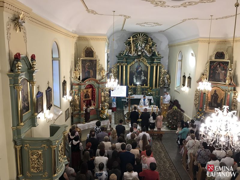 Uroczysta Msza św. dziękczynna rozpoczęła się od pobłogosławienia przyniesionych do ołtarza wieńców i darów ofiarnych. W tym roku wieńce dożynkowe przygotowane zostały przez przysiółki: Tarnawa – Centrum, Zbydniów – Podjasień oraz Koło Gospodyń Wiejskich. Po Mszy św. ks. prob. Jan Warta poświęcił zioła i owoce przyniesione do kościoła, a orkiestra dęta zagrała kilka utworów religijnych oraz patriotycznych.