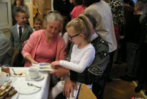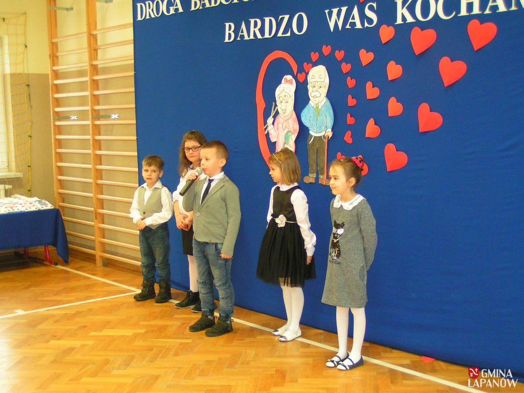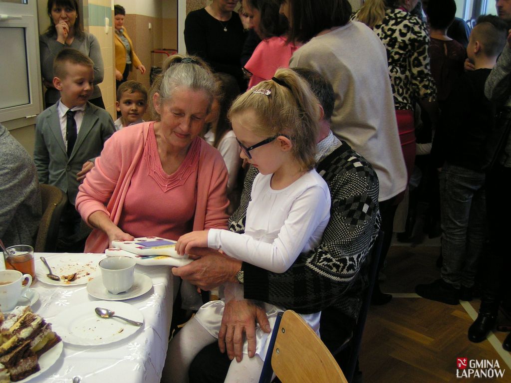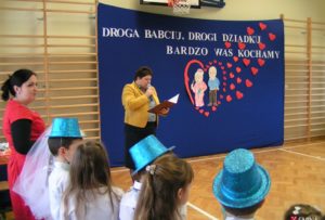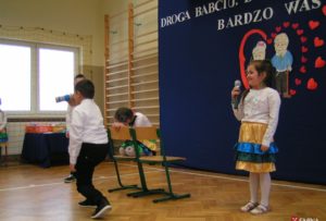 W dalszej części miały miejsce występy artystyczne poszczególnych klas. Pięknie przygotowane programy wywołały u niejednego łzę wzruszenia. Na zakończenie dzieci wręczyły swoim babciom i dziadkom własnoręcznie wykonane prezenty oraz zaprosili ich na przygotowany przez rodziców słodki poczęstunek.