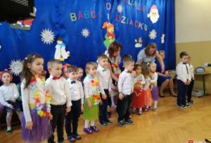 Występy wszystkim się bardzo podobały, co wyrażane było gromkimi brawami. Po części artystycznej Babcie i Dziadkowie zostali obdarowani pamiątkowymi zdjęciami wnuków i wnuczek oraz zaproszeni na poczęstunek przygotowany przez Rodziców.