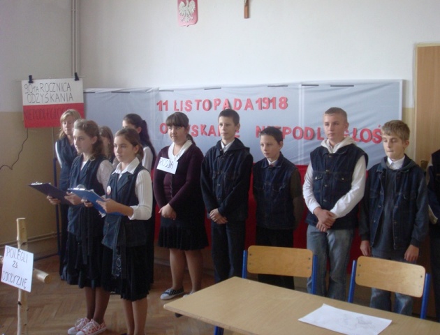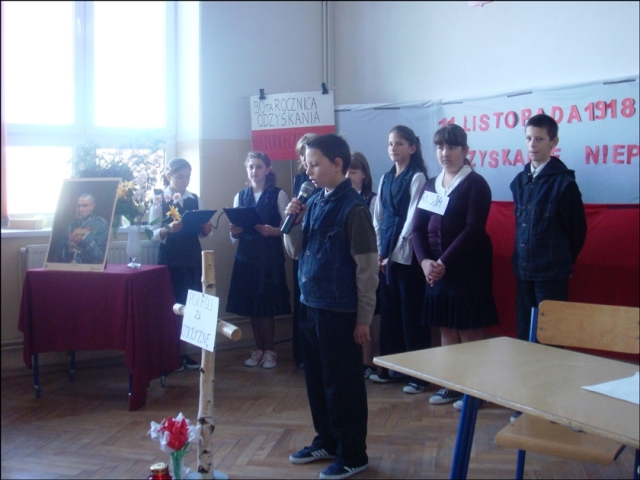 90 rocznicę odzyskania niepodległości przez Polskę uczciliśmy w naszej szkole uroczystą akademią. W pięknym programie młodzi artyści przybliżyli historyczne wydarzenia, które doprowadziły do pamiętnego dnia 11 listopada 1918 roku. Przypomniano daty kolejnych rozbiorów Polski oraz daty powstań narodowych. Wiersze i pieśni patriotyczne prezentowano w wyjątkowo podniosłym nastroju, który udzielił się wszystkim zgromadzonym na akademii. Uczestnictwo w tej uroczystości było bardzo ważną lekcją historii.