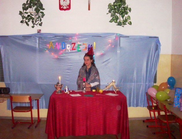Rozbrzmiewała w naszej szkole głośna muzyka. Uczniowie bawili się, bowiem na zabawie andrzejkowej. Uśmiechnięci, w dobrych nastrojach – wszyscy popisywali się swoimi umiejętnościami tanecznymi w rytm dyskotekowych rytmów. Jak na andrzejki przystało można była poznać tajemnicę swojej przyszłości, korzystając z porad wróżki?