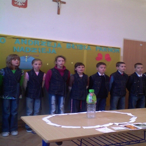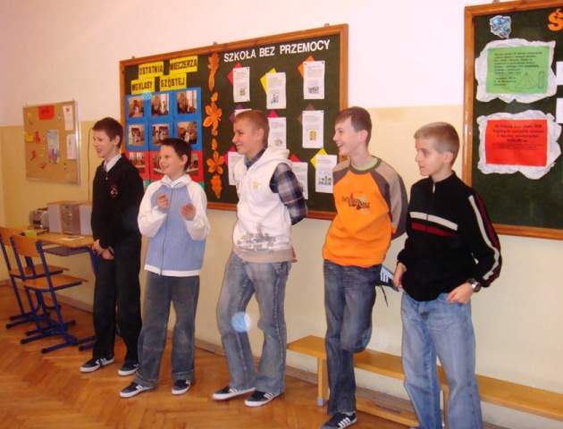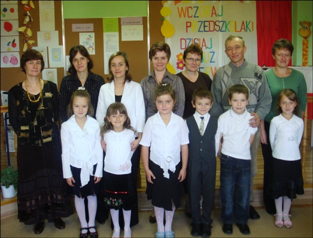 Zespół z klasy III w składzie: Statek Izabela, Stokłosa Sylwia, Buczek Katarzyna, Klejdysz Małgorzata, Fielek Karol, Płachta Grzegorz i Smaga Patryk.