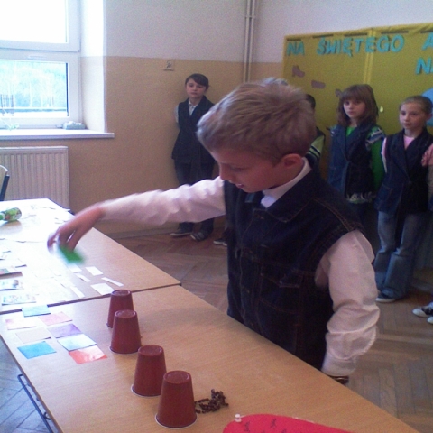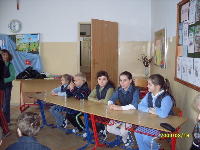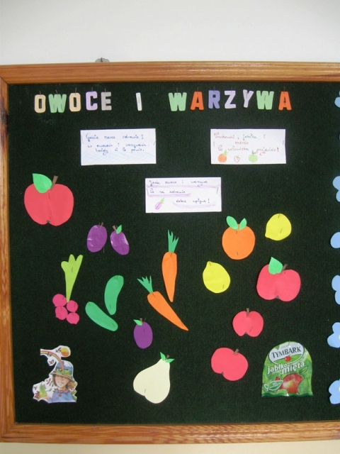 W tym dniu najpierw uczniowie klasy III pod opieką wychowawcy zaprezentowali przedstawienie „Owoce, warzywa i soki są na 5”. Następnie odbyły się konkurencje w grupach kolorystycznych; białej, czarnej, czerwonej, zielonej i żółto – pomarańczowej: rzuty orzechami do koszyków, bieg z pomarańczami w koszykach, rozwiązywanie zagadek ukrytych w balonikach „Witaminkach” , bieg po „Witaminkę” , odgadywanie nazw warzyw i owoców w języku angielskim, rozpoznawanie warzyw i owoców różnymi zmysłami (z zasłoniętymi oczami), owocowo – warzywny slalom.
