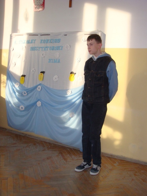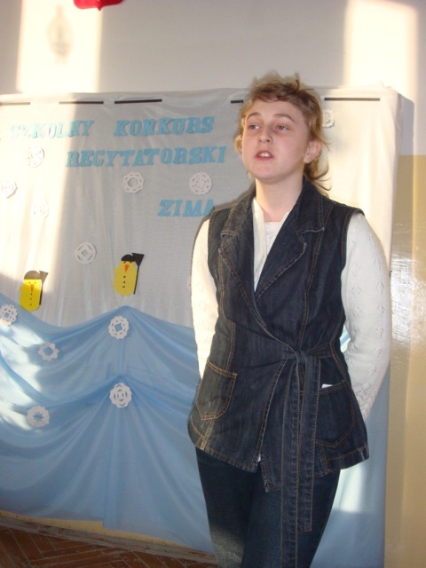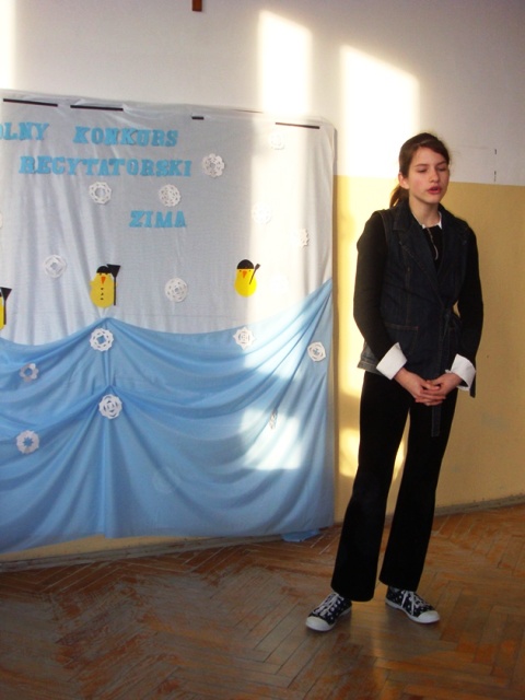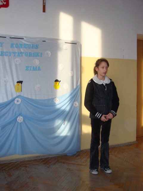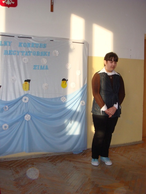 Szkolny konkurs recytatorski o tematyce zimowej skierowany był do uczniów z klas IV – VI.