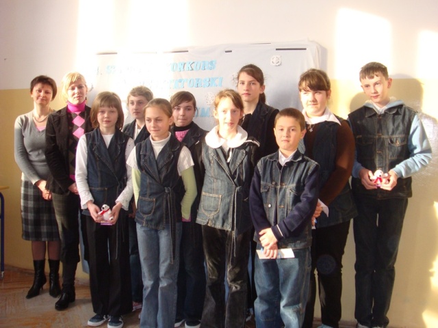 Wyróżnienia zdobyli: Bujak Krzysztof, Fielek Karol i Kobyłko Marek. Ze względu na zdobycie przez dwie uczennice równorzędnych 1 miejsc, obyła się jeszcze dogrywka, zgodnie z regulaminem, która wyłoniła zwycięzcę – Statek Izabelę. Uczennica ta 2 lutego reprezentowała naszą szkołę na międzyszkolnym etapie konkursu, który odbył się w Centrum Wystawowo – Konferencyjnym Zamku Królewskiego na Wawelu w Krakowie.