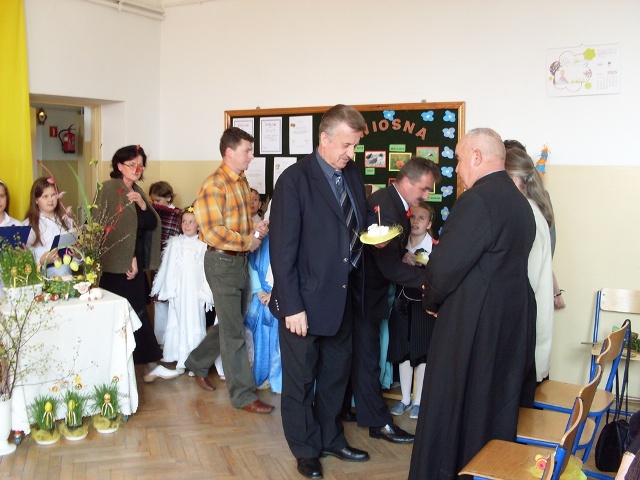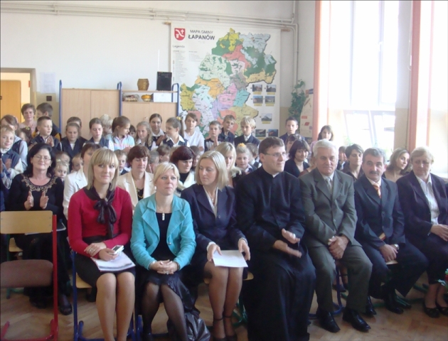 Podniosłość tego dnia i świąteczna atmosfera udzieliła się też naszym dostojnym gościom, bowiem w naszej szkole witaliśmy pana Jana Kuliga – Wójta Gminy Łapanów, proboszcza ks. Tadeusza Skurę, pana Ryszarda Kaczmarczyka – Radnego ,panią Dyrektor Danutę Statek oraz przedstawicieli Rady Rodziców.