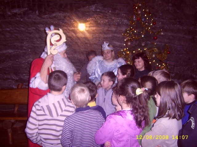 Dzieci z klas 0 – III pod opieką wychowawców udały się do Kopalni Soli w Bochni na spotkanie ze Św. Mikołajem, który czekał na nich w towarzystwie aniołów oraz z workiem pełnym prezentów. Nasi najmłodsi wzięli też udział w ciekawych konkursach nagradzanych prezentami, bawili się w korowodach pod przewodnictwem wodzirejów na szczudłach, a także tańczyli w rytm muzyki dyskotekowej w stylowej sali wielobarwnie oświetlonej . Dzieci zwiedziły też trasę turystyczną, której niewątpliwą atrakcją okazała się jazda kolejką.