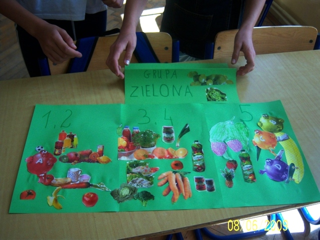 W międzyczasie pozostali uczniowie zostali losowo podzieleni na 6 grup. Mieli oni za zadanie wykonać plakat promujący spożywanie 5 porcji warzyw, owoców i soków dziennie.