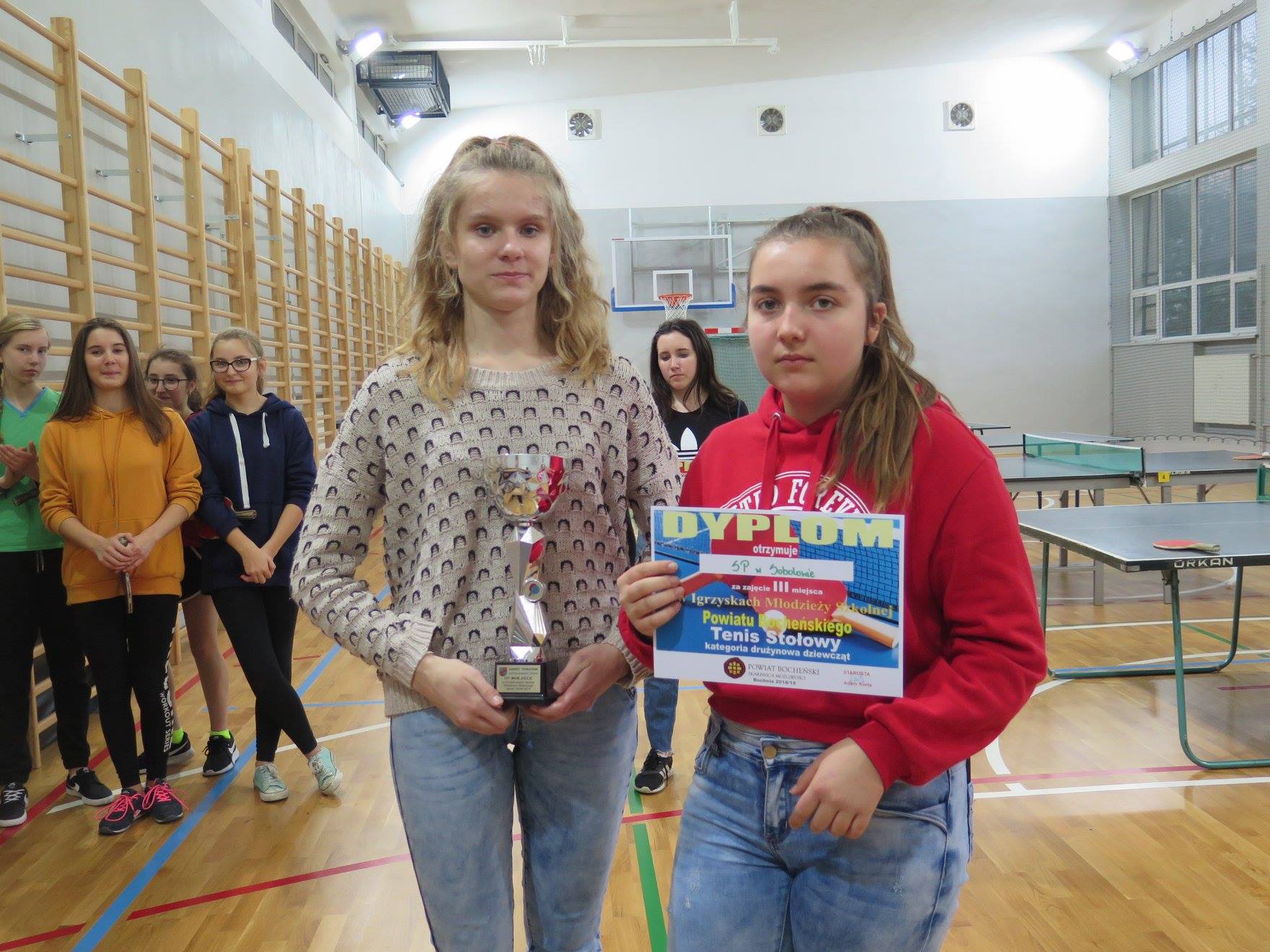 26 listopada 2018 r. w Szkole Podstawowej nr 5 w Bochni odbyły się powiatowe zawody tenisa stołowego dziewcząt w ramach Igrzysk Młodzieży Szkolnej. Na początek dziewczyny rywalizowały w grach indywidualnych. Tutaj bardzo dobrze spisała się Julia Bratownik ze Szkoły Podstawowej w Sobolowie, która wygrała zawody, a tym samym została mistrzynią powiatu bocheńskiego w roczniku 2003, 2004, 2005. W grach drużynowych Julia Bratownik oraz Karolina Prusak ze Szkoły Podstawowej w Sobolowie zajęły trzecie miejsce, a czwarte były Ewelina Puto i Julia Trojańska z Publicznego Gimnazjum w Łapanowie.