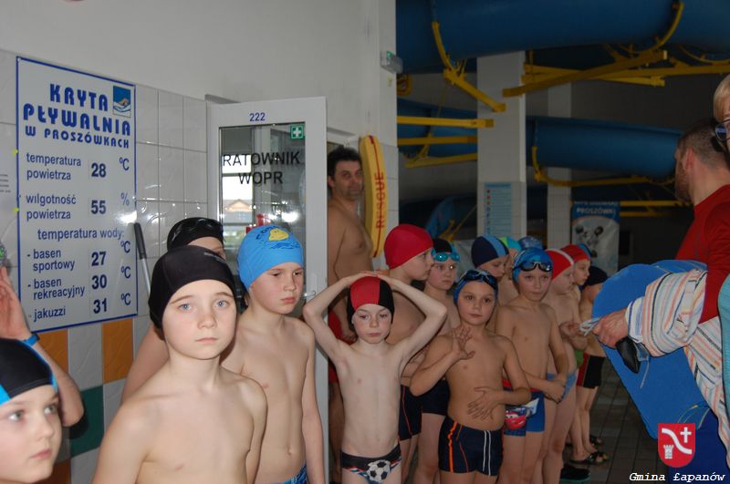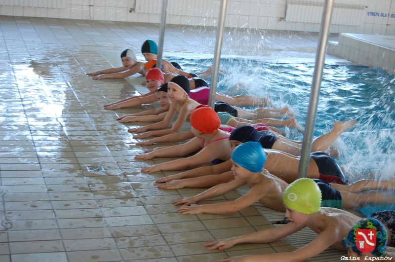 Zakończyła się kolejna, już IX edycja Programu „Już Pływam” realizowana na terenie gminy Łapanów. Przez 9 tygodni 84 dzieci ze Szkół Podstawowych z klas I-VI, uczestniczyły w zajęciach nauki pływania zorganizowanych w ramach Programu „Już Pływam”, realizowanego przy wsparciu finansowym Województwa Małopolskiego. Zajęcia odbywały się na krytej pływalni w Proszówkach, na której zapewniona była fachowa obsługa instruktorska i ratownicza. Transport w godzinach popołudniowych zapewniał Urząd Gminy a opiekę sprawowali nauczyciele z poszczególnych szkół. W sumie dzieci spędziły na nauce pływania 18 godz. lekcyjnych. Celem programu było podniesienie ogólnej sprawności fizycznej uczniów, nabycie podstawowych umiejętności pływackich, profilaktyka wad postawy i skrzywień kręgosłupa, wzrost bezpieczeństwa dzieci. Zakładanymi rezultatami programu było zdobycie umiejętności pływania przez uczestników, zapoznanie ucznia z zasadami bezpieczeństwa, rozważne i aktywne spędzanie wolnego czasu, oswojenie dzieci z wodą, kąpieliskiem, rozwijanie społecznych zachowań, zdyscyplinowanie i systematyczność, poprawa kondycji fizycznej oraz profilaktyka wad postawy.