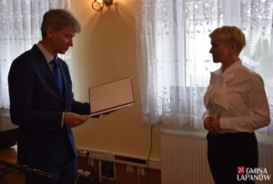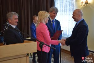 Po zakończeniu obrad wójt Andrzej Śliwa wraz z przewodniczącą Celiną Jacewicz podziękował odchodzącym z Urzędu Gminy pracownikom: Sekretarzowi Gminy Tadeuszowi Białce oraz kierownikowi Referatu Infrastruktury i Ochrony Środowiska Dorocie Matlęga.