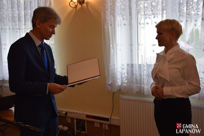 Po zakończeniu obrad wójt Andrzej Śliwa wraz z przewodniczącą Celiną Jacewicz podziękował odchodzącym z Urzędu Gminy pracownikom: Sekretarzowi Gminy Tadeuszowi Białce oraz kierownikowi Referatu Infrastruktury i Ochrony Środowiska Dorocie Matlęga.